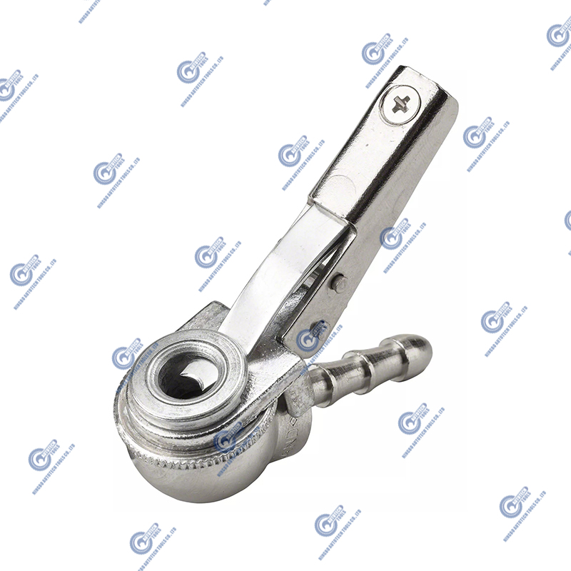バルブコネクタの乳頭付きクリップ付きクリップ付きのクリップは、車とトラックタイヤを簡単にインフレするために、25°の角度でバルブのホースを固定します。